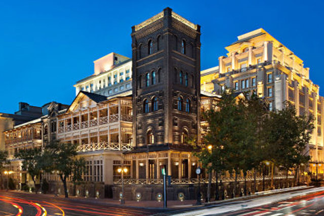 天津利順德大飯店面對美麗的海河,背靠金融一條街,設施豪華,環境幽咖啡廳(酒店老樓歷史中的大堂)雅,有中國第一座涉外飯店之稱。
